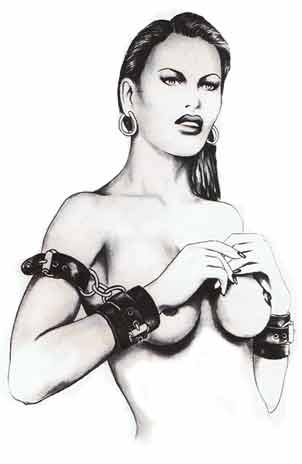 A simple but very effective bondage harness that restricts your slave or subs wrist and holds them firmly in place against the upper arm.