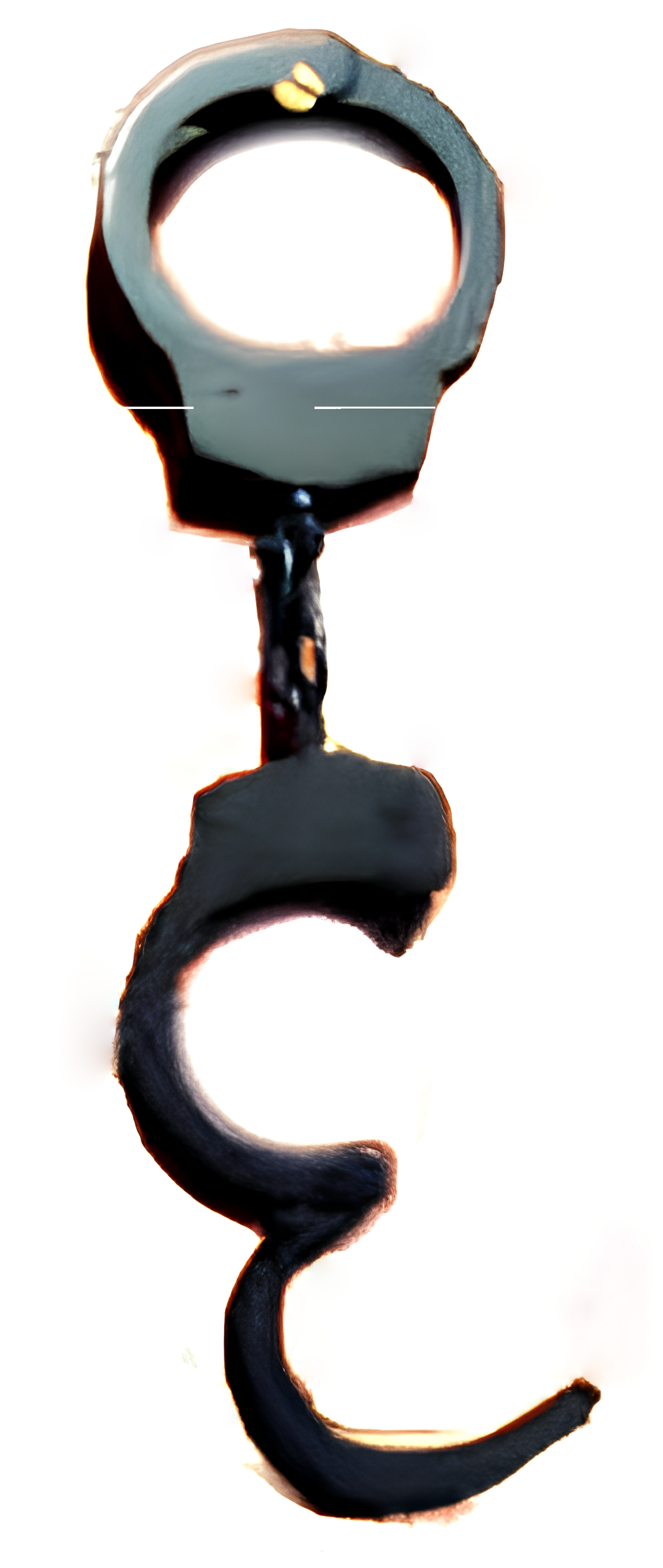 Polished steel police pattern ratchet locking wrist cuffs. Two keys provided, stop lock to ensure that wrist skin is not crushed against cuff body if subject struggles.