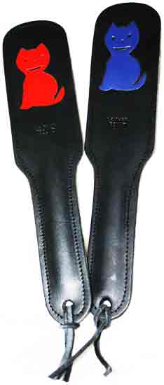 Red or blue cat fitted into the slapper end of the paddle.